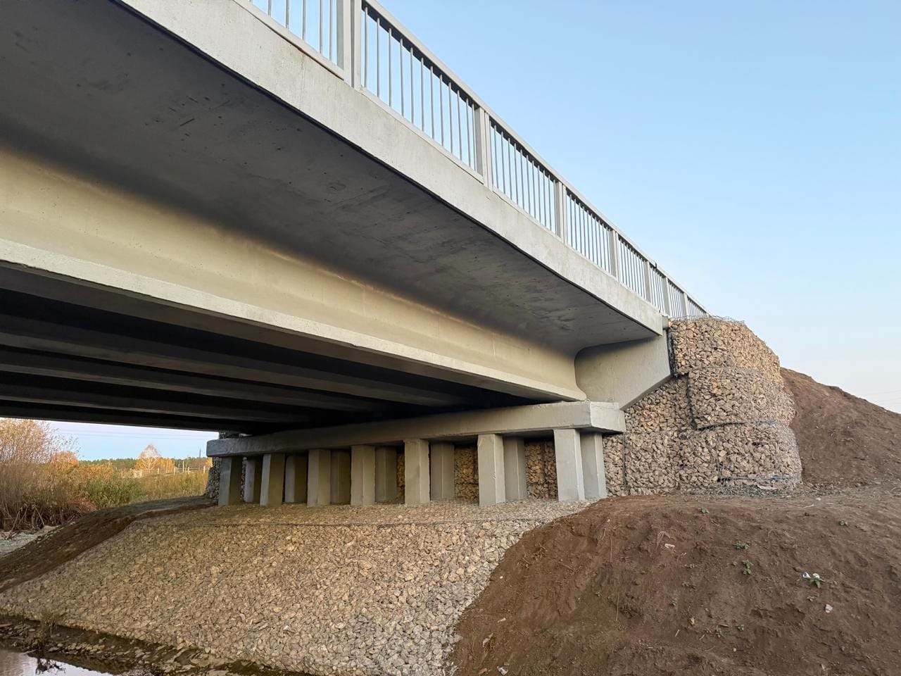 В процессе ремонта мостостроители обновили опоры пролетных строений, выполнили устройство гидроизоляционного слоя, установку барьерного и перильного ограждения, укрепили конусы. Также выполнили устройство асфальтобетонного покрытия на мосту и подходах и нанесли горизонтальную разметку.
